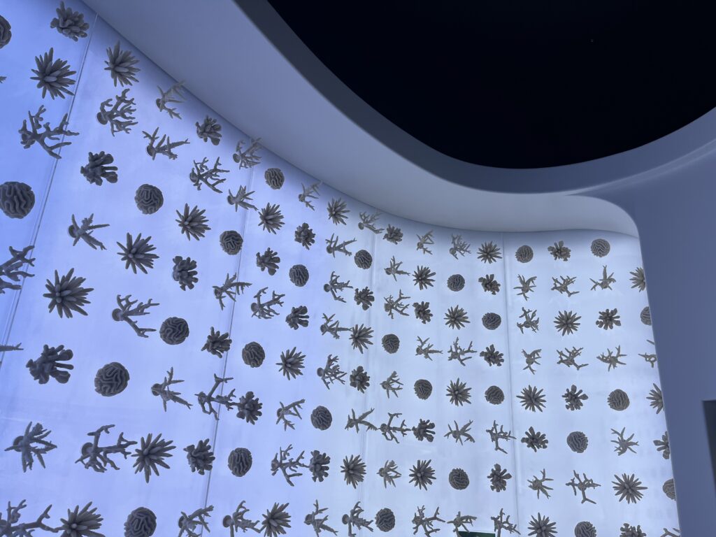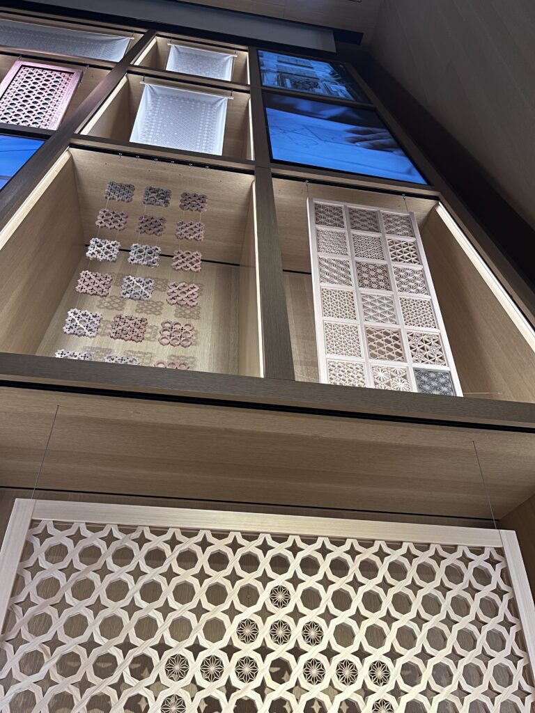 高い壁や椰子の木、美しい内装と華やかな展示作品、とてもエレガントな空間でした。